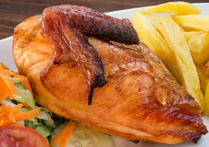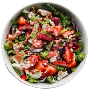 A bed of arcadian mix with roasted chicken, red onions, red peppers, tomatoes, black beans, corn, avocado, cilantro, shredded cheddar cheese, and FG signature chipotle ranch dressing.